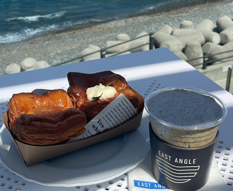 **‘이스트앵글 베이커리카페(East Angle Bakery Cafe)’**를 추천합니다! 🏖